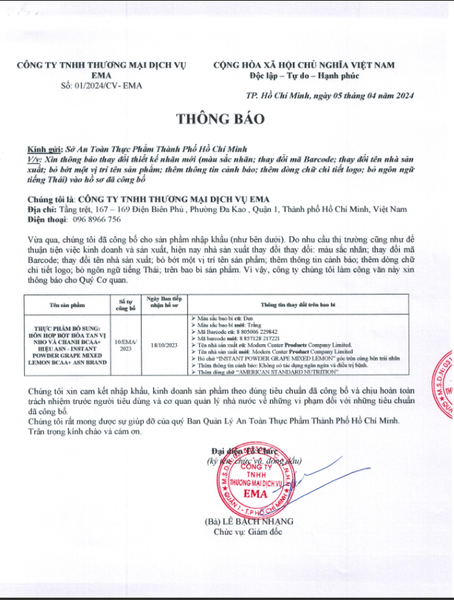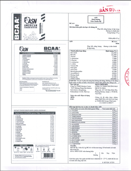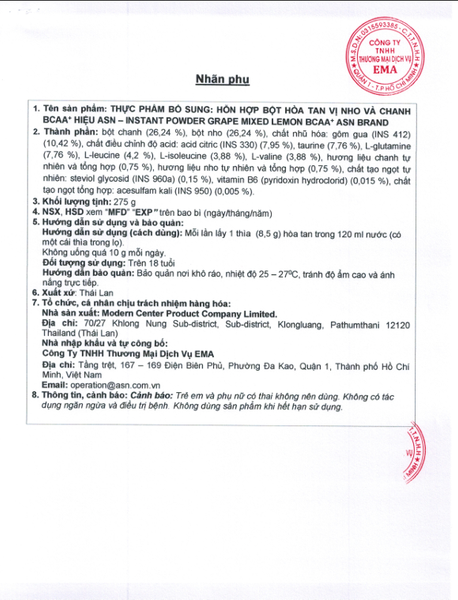 THÔNG TIN TỰ CÔNG BỐ ASN BCAA+ GRAPE LEMON FLAVOR ASN Thứ Hai, 05/01/2026 1 phút đọc Nội dung bài viết