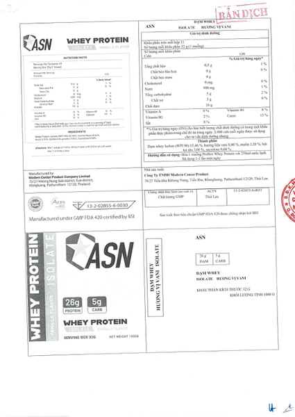 THÔNG TIN TỰ CÔNG BỐ ASN WHEY PROTEIN ISOLATE VANILLA FLAVOR ASN Thứ Hai, 05/01/2026 1 phút đọc Nội dung bài viết