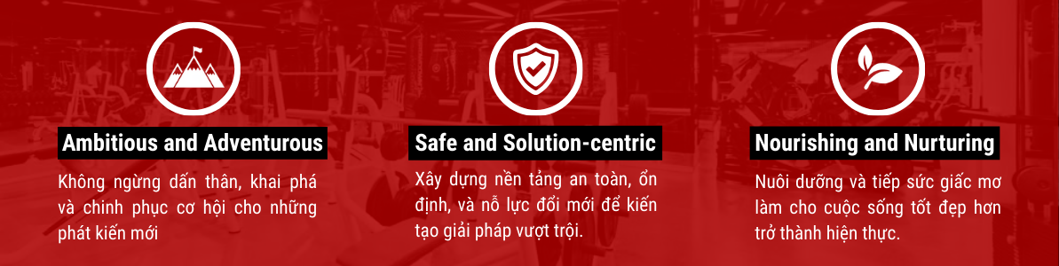 Khơi nguồn và lan tỏa câu chuyện nâng cao sức khỏe thể chất và tinh thần, thông qua qua các hoạt động tư vấn dinh dưỡng và tập luyện phù hợp với thể trạng người Việt, bằng những sản phẩm đáp ứng tiêu chuẩn cao nhất Việt Nam.